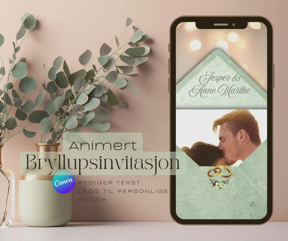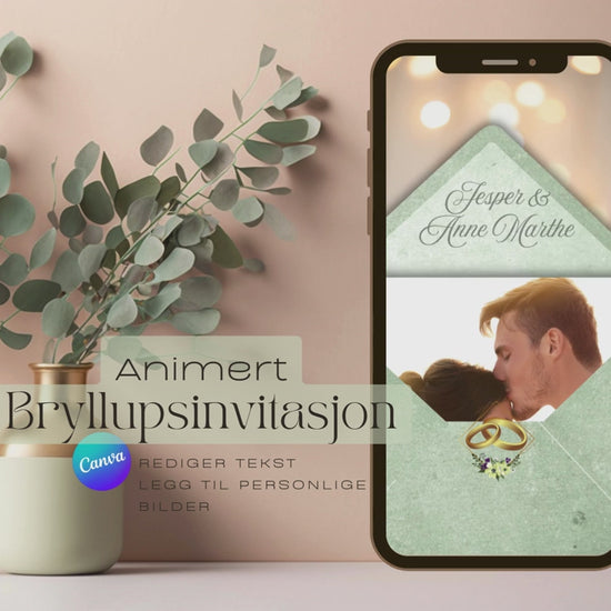 💌 Digital animert bryllupsinvitasjon stilfull, enkel og miljøvennlig