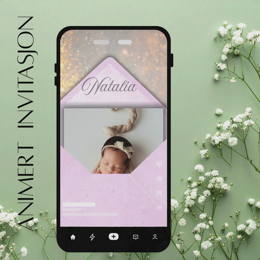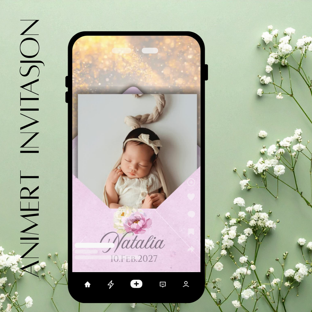 💌 Digital animert dåpsinvitasjon stilfull, enkel og miljøvennlig