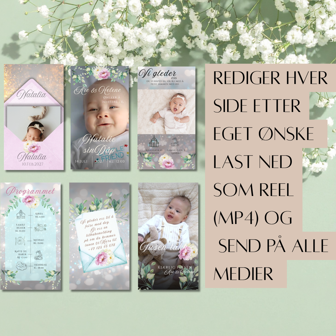 Er du ute etter en personlig dåpsinvitasjon som både sparer tid og tar seg godt ut? Med vår digitale dåpsinvitasjon får du en elegant og brukervennlig mal som åpnes direkte i Canva, Perfekt for deg som har en travel hverdag, men likevel ønsker å gjøre inntrykk med stil og omtanke.