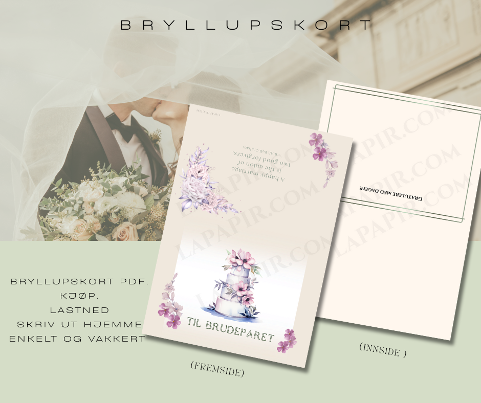 Bryllupskort til brudeparet. PDF. Skriv ut hjemme